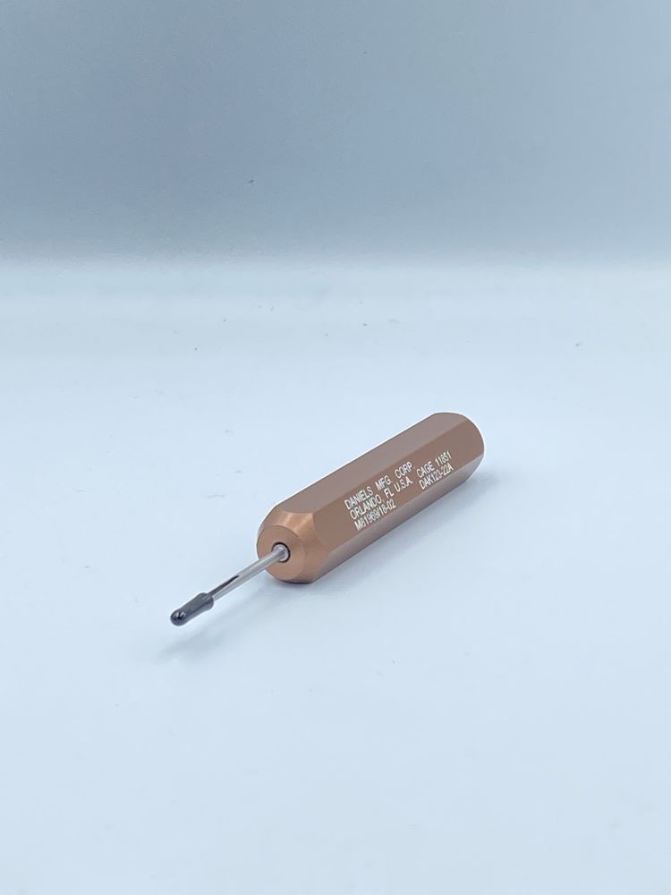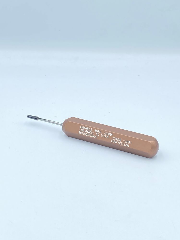 Mil spec M81969/18-02, is an insertion tool designed for size 22 pin and socket contacts installed in MIL-C-22857 and MIL-C-28748 rectangular rack and panel type connectors. Contact numbers: M39029/34-22-22, M39029/34-440, M39029/35-22-22, M39029/35-441, FC422N2, MC422N