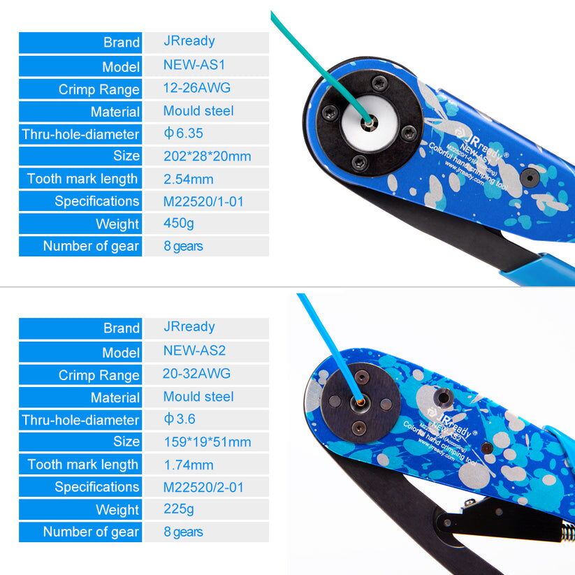 Both crimp tools are designed to M22520/1-01 and M22520/2-01 standards. The precision ratchet cycle mechanism ensures accurate and repeatable crimps.
